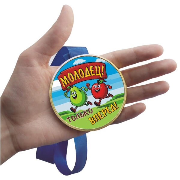 Медали "Молодец-только вперед!" (наклейка, лента красная)