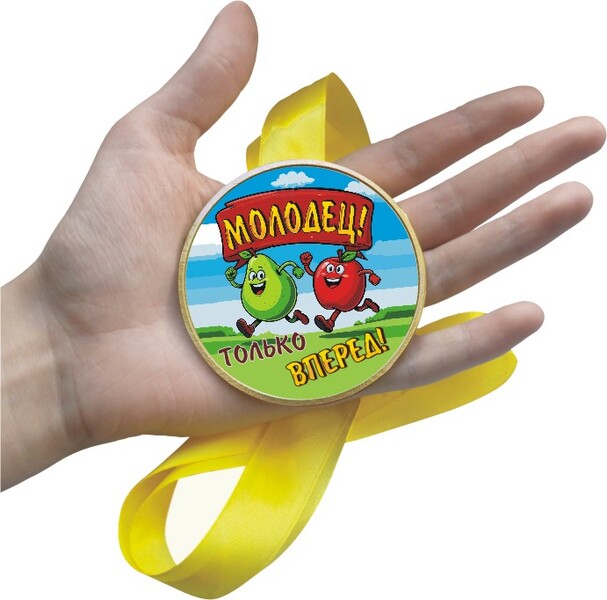 Медали "Молодец-только вперед!" (наклейка, лента красная)