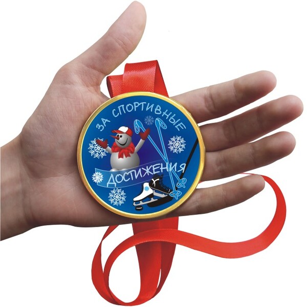 Медали "За спортивные достижения (зима)" (наклейка, лента синяя)