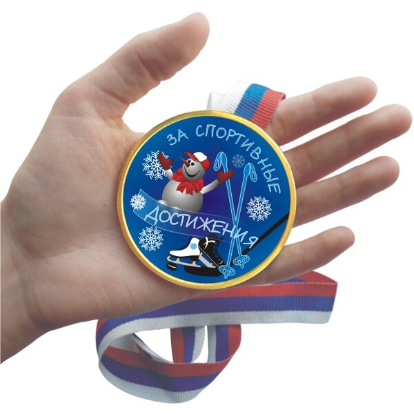 Медали "За спортивные достижения (зима)" (наклейка, лента синяя)