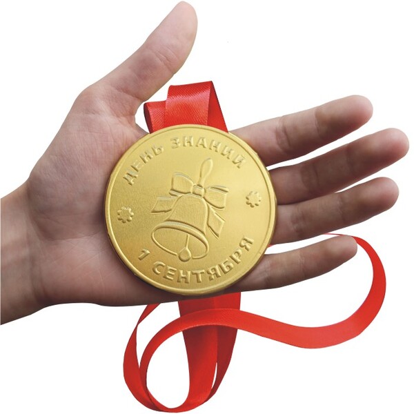 Шоколадная медаль на ленте 1 сентября ( лента желтая )