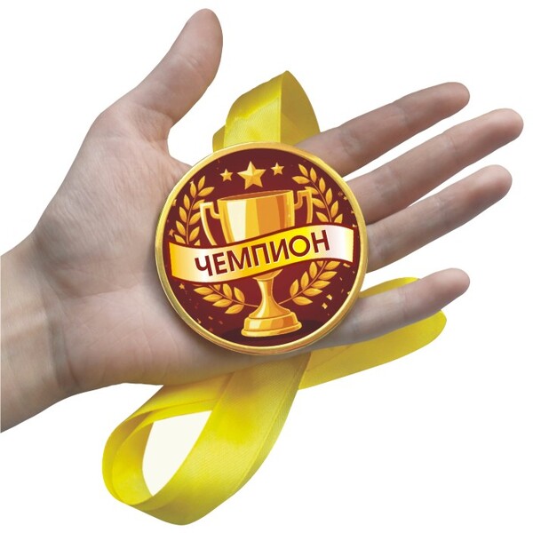 Шоколадная медаль на ленте Чемпион "Бордо" (лента красная)