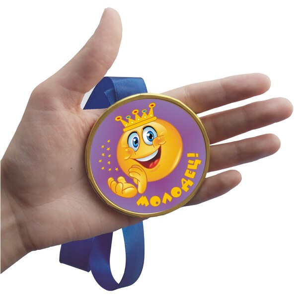 Шоколадная медаль на ленте МОЛОДЕЦ! (наклейка, лента желтая)