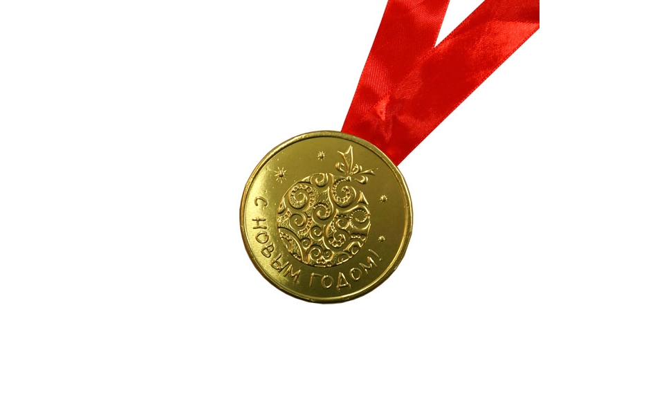 Шоколадная медаль на ленте С Новым годом! ( лента триколор )