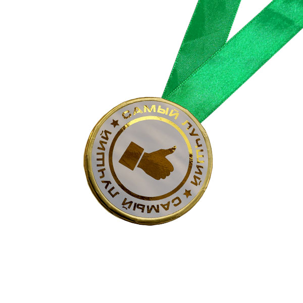 Шоколадная медаль на ленте Самый лучший ( наклейка, лента красная )