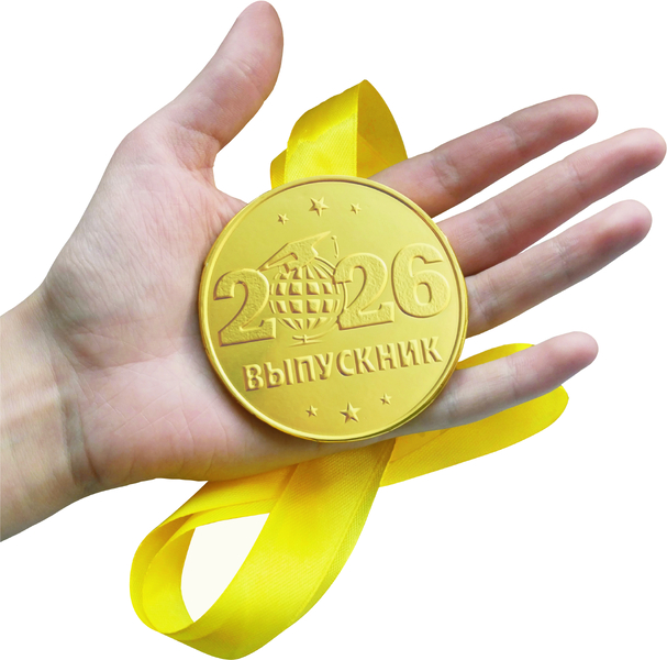 Шоколадная медаль на ленте Выпускник 2026 (лента красная)