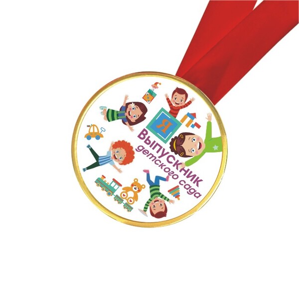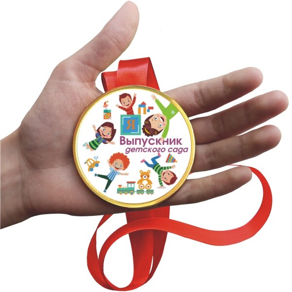 Шоколадная медаль на ленте Выпускник детского сада "Улыбки" (лента зеленая)