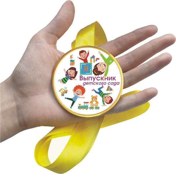 Шоколадная медаль на ленте Выпускник детского сада "Улыбки" (лента красная)