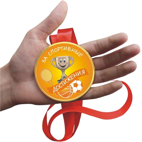 Шоколадная медаль на ленте За спортивные достижения ( лента жёлтая )
