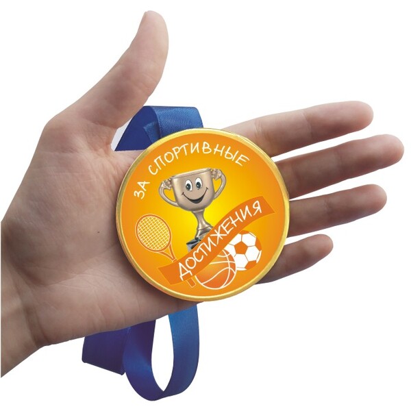 Шоколадная медаль на ленте За спортивные достижения ( лента жёлтая )