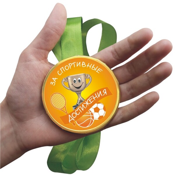 Шоколадная медаль на ленте За спортивные достижения ( лента жёлтая )